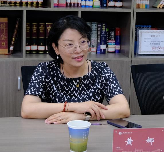 (筹)院长高红樱、美育教学研究中心主任李然与杨杰教授进行友好会谈。