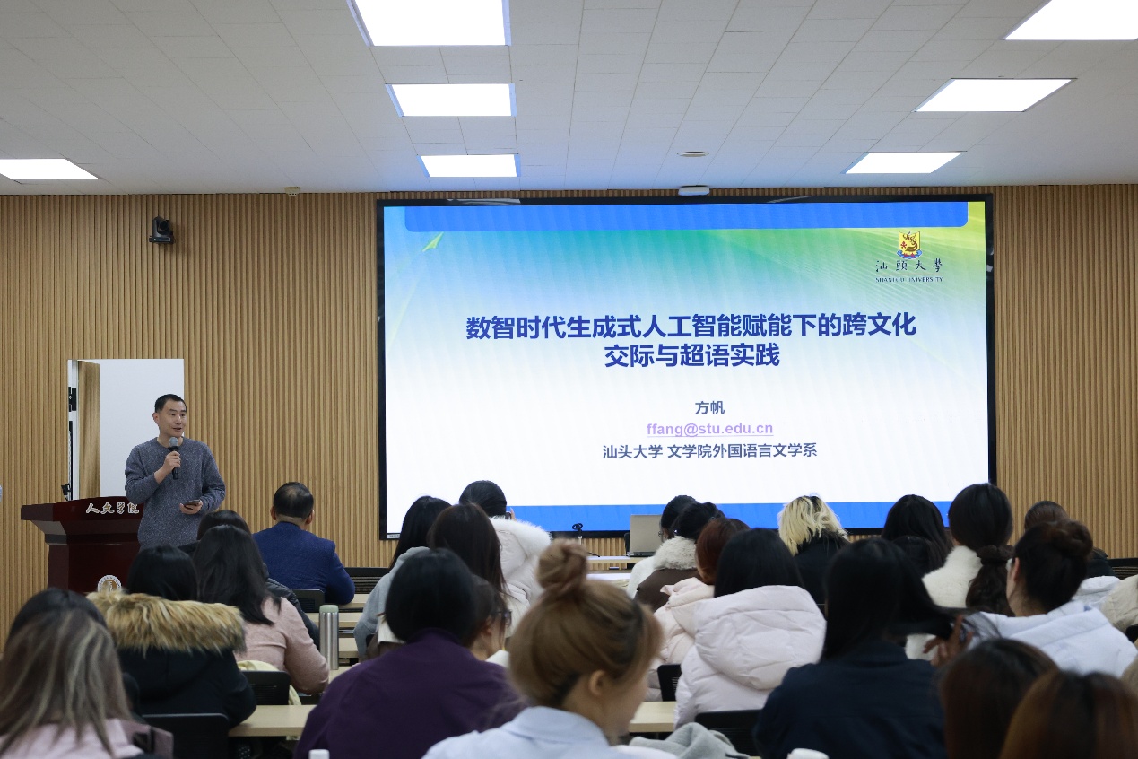 邀请汕头大学方帆教授举办了“数智时代生成式人工智能赋能下的跨文化交际与超语实践”讲座。讲座由商务英语系主任郑意长主持,欧博官网